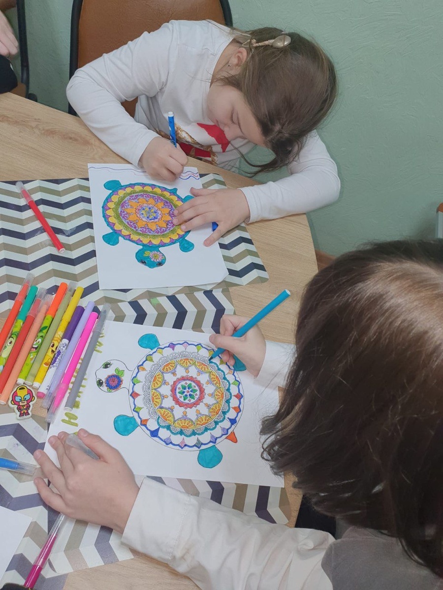 Под руководством специалиста ребята смастерили весёлую черепашку своими руками. Все ребята очень старались, аккуратно склеивали и украшали своих черепашек. А чтобы не было скучно работать, специалист рассказала много интересных фактов об этом загадочном животном, местах обитания, особенностях существования, а также предложила вспомнить произведения, где героями являются черепахи. Атмосфера на мастер-классе в этот день была творческой и дружелюбной. У каждого получилась своя яркая и неповторимая поделка.