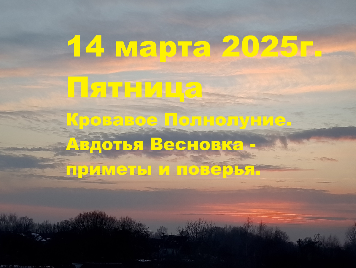 14 марта 2025 г. Пятница. Кровавое Полнолуние. Авдотья Весновка- Народные приметы, прогнозы и поверья .Число дня 8.