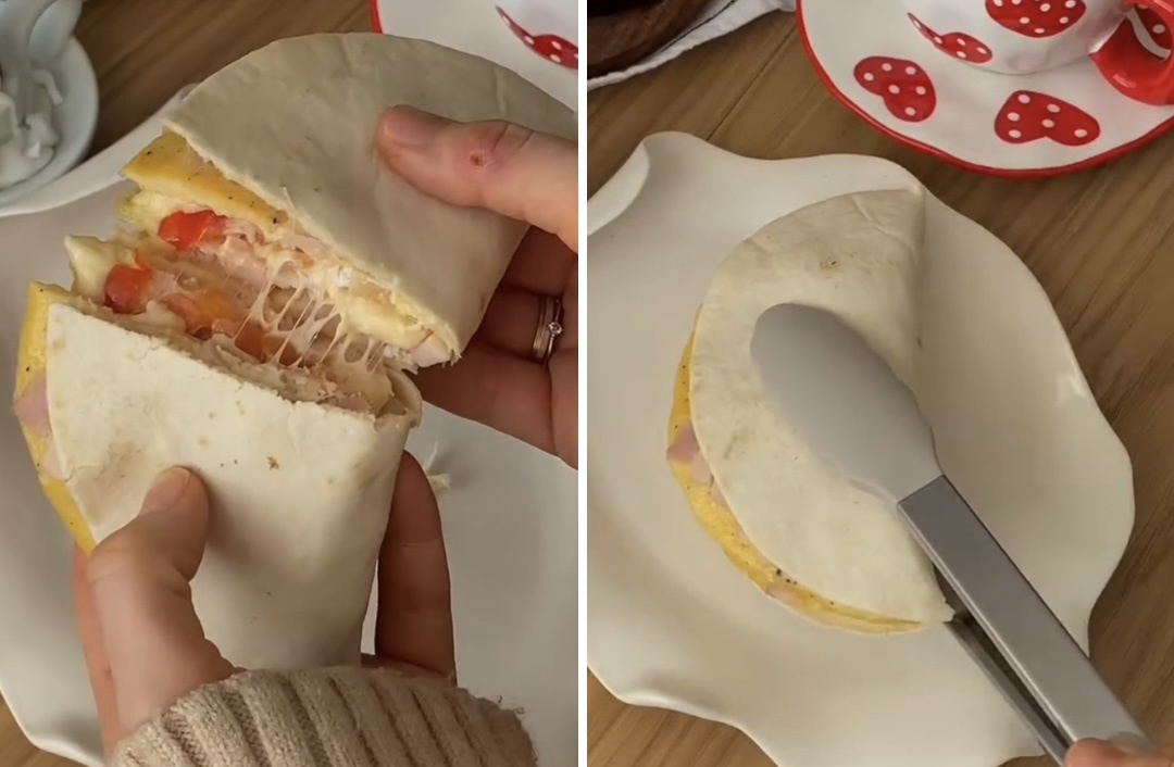Ингредиенты: -тортилья -яйцо -соль/перец -ветчина -сыр -набор кухонных принадлежностей от hilZz из 13 предметов, артикул на Wildberries 178597922 Взбить яйцо, добавить специи по вкусу