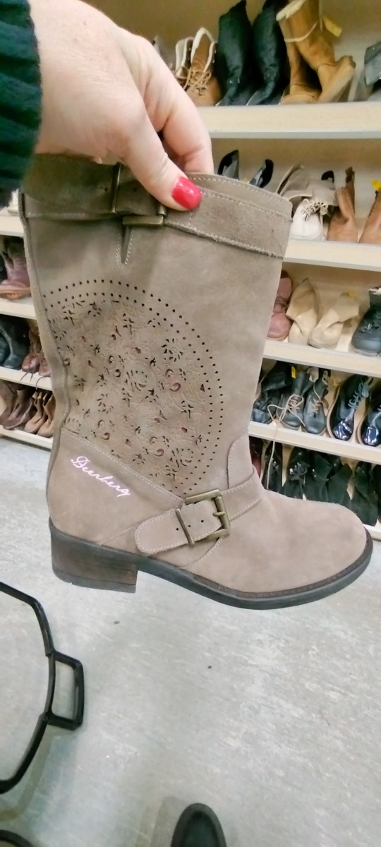Здрасьте-здрасьте, мои дорогие читатели и смотрители! Подчищала тут намедни свой телефон, и была сильно удивлена, как много оказалось у меня фотографий, которые я ещё не публиковала. Так вот. Хочу исправится и показать, что встречала я из обуви в разное время, но по какой-то причине не показывала Вам. И так, исправляюсь! 1. Сапоги из серой замши, с перфорированным голенищем, а внутри натуральная кожа розового цвета. Дизайном они похожи на Disigual, но это вроде не они. Стоимость была 2000₽ 2. Вот такие полусапоги на устойчивом каблучке из плотного нубука. Цена на них была 500₽. Не знаю, почему их оставила, сейчас смотрю на них и жалею, что не приютила. 3. Челси на сплошной подошве. Плотная коричневая кожа. Стоимость по-моему была 2000₽ 4. Рыжие казаки. Несмотря на круто загнутый нос и отсутствие набоек, я готова была их забрать. Но увы, они оказались безнадёжно малы. Крутые ведь! И стоили 500₽. Ну а поставить набойку можно было бы в любой обувной мастерской. 5. Замшевые ботин