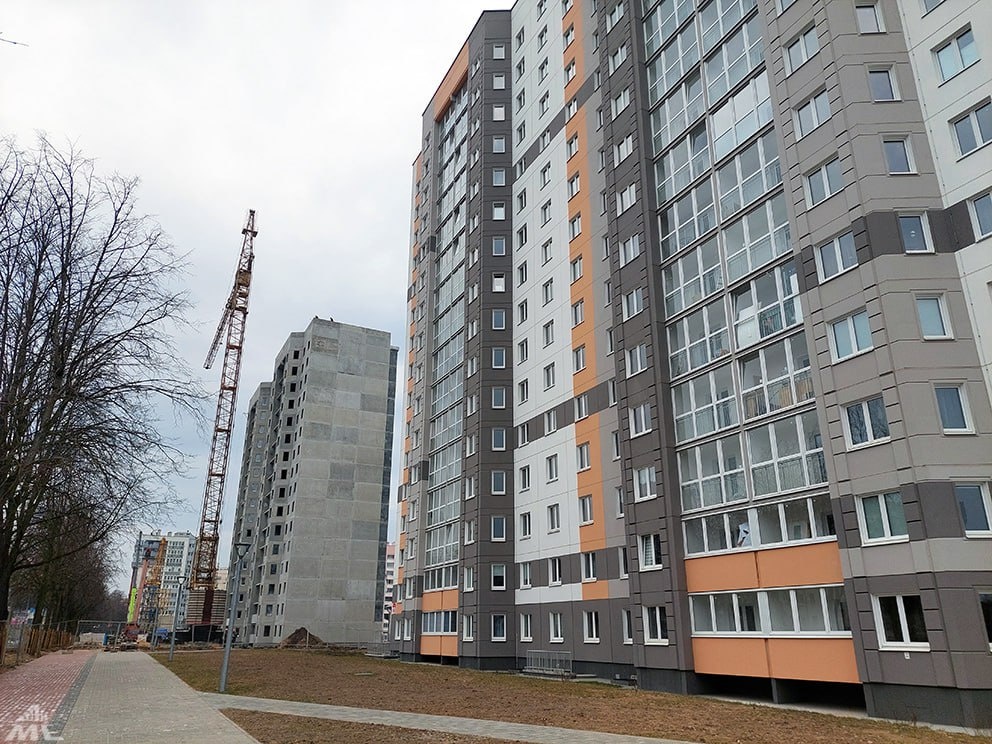 В районе Логойского тракта в Минске продолжается строительство высоток для очередников. Когда-то на этом участке размещались старые двухэтажки, а скоро тут будет квартал из пяти новых домов: две многоэтажки уже сдали, три – в процессе возведения. «Минскстрой» поделился свежими фотографиями со стройки. Сейчас бывший тихий уголок на Волгоградской уже не узнать. Две многоэтажки уже сданы (их обживают новоселы), еще три дома находятся в разной степени готовности. Так, на площадке под стройку четвертой многоэтажки (№1 по генплану) представители 122-го УНРМ устанавливают 70-метровый подъемный кран КБ-515. Сейчас тут завершаются работы по устройству фундамента, а дальше начнется сборка этажей. Дом будет 16-этажным, двухсекционным, серии М 464-М. По соседству полностью смонтирован аналогичный дом № 2. Тут ведутся работы на кровле, герметизируются стыки, началась отделка мест общего пользования и квартир. Здесь кран уже демонтирован и постепенно (по секциям) покидает площадку. А вот дом № 5 нах