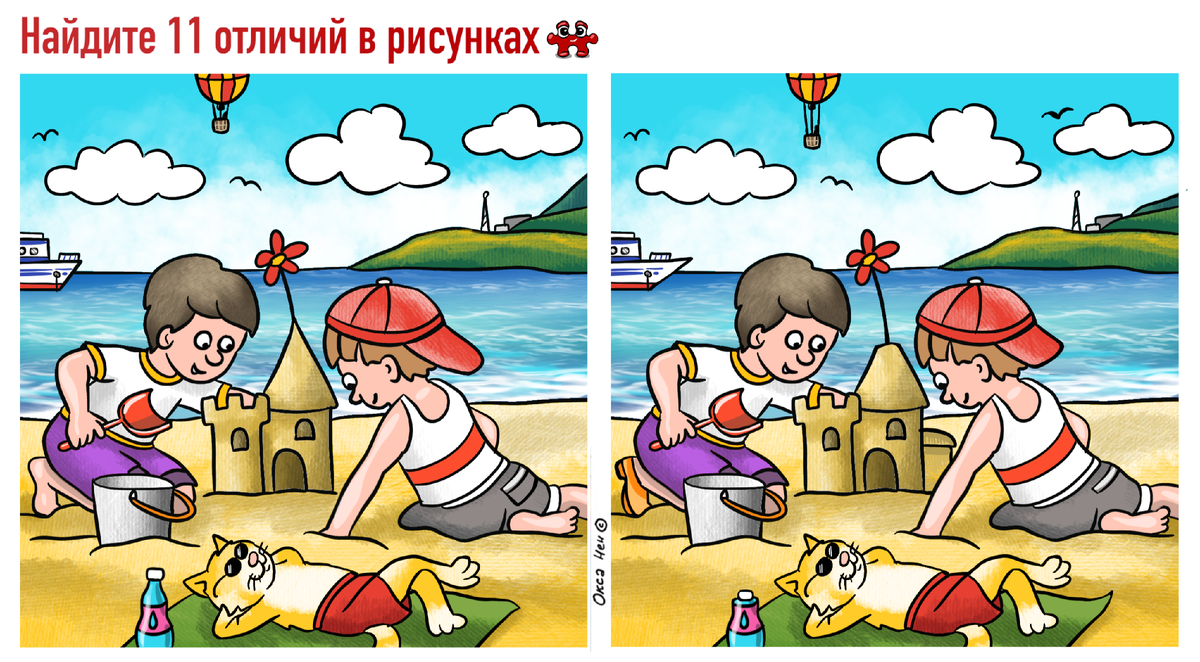 Тема сегодняшнего теста самая приятная - море, солнечный пляж, играющие детки, и котик присутствует:) Отличий как всегда 11, но помимо картинки можно еще решить и анаграмму для лучшей разминки ума. Живая картинка для настроения прилагается.