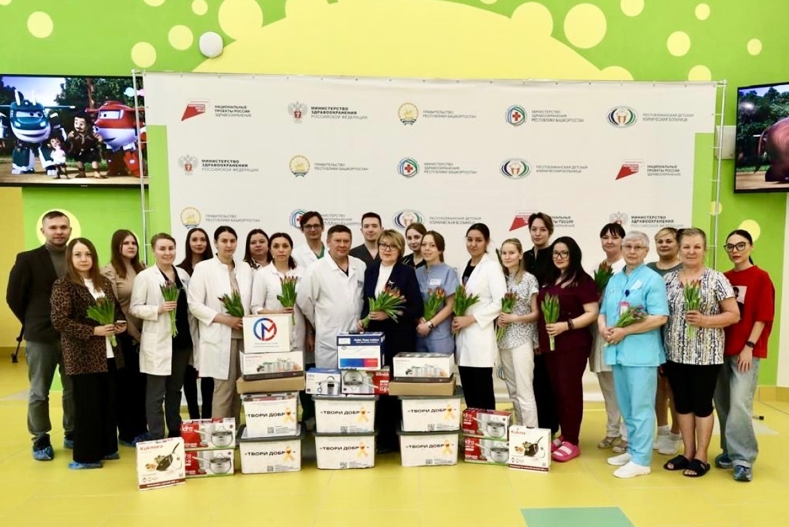 Книги, настольные игры, раскраски, детская посуда и наборы для творчества — все это волонтеры проекта «Твори Добро» собрали и передали в центр детской онкологии и гематологии. Здесь проходят лечение маленькие пациенты, и чтобы поддержать их, была создана «Коробка храбрости» — после каждой медицинской процедуры ребенок может выбрать из нее подарок, который помогает отвлечься и почувствовать себя лучше. В этот раз в рамках акции в больницу привезли не только игрушки, но и кастрюли со сковородками — они помогут родителям, которые находятся рядом с детьми в стационаре. А медицинский персонал, особенно его женская половина, был приятно удивлен букетами тюльпанов. Инициатор проекта — член Общественной палаты Башкортостана Светлана Туразянова. Впервые она привезла четыре «Коробки храбрости» в онкогематологическое отделение РДКБ в октябре 2021 года. С тех пор, вместе с командой «Твори Добро», она передала в больницу тысячи игрушек, организовала десятки мероприятий для детей и их родителей, обо