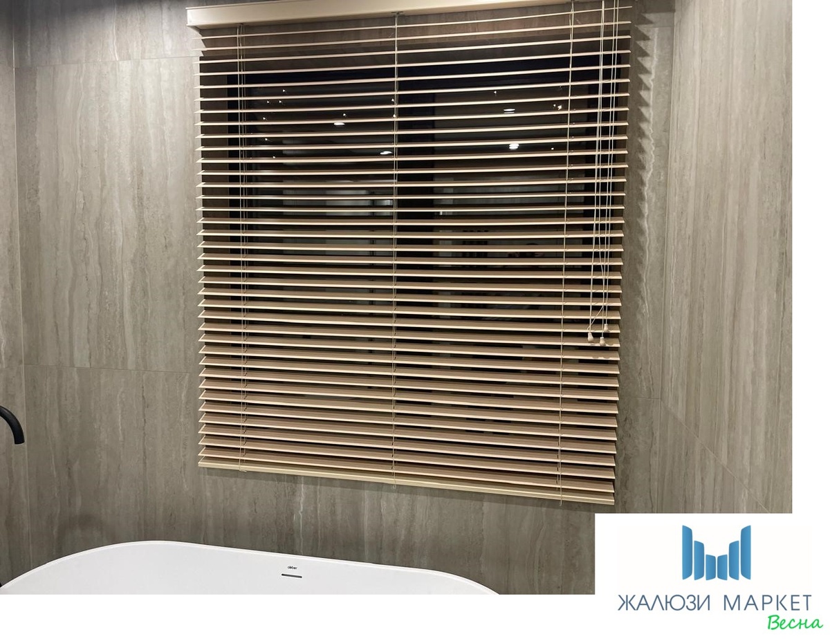 Что будет, если установить жалюзи из натурального дерева в ванной? Ванные в частных домах часто с окошками, чтобы было побольше света и пространства. Иногда такие окошки на виду у соседей или прохожих. Так вот, во-первых, с помощью жалюзи мы надежно визуально изолируем ванную, когда это нужно. Во-вторых, жалюзи из дерева особенно красивы и естественны. Никакой пластик или алюминий с ними не сравнится. В данном примере жалюзи на отдельном карнизе, установленном над оконным проёмом. Управление стандартное, с помощью троса. В-третьих, нет, они не боятся влаги, их смело можно вешать в ванной или на кухне. Поэтому, отвечая на вопрос, что будет, если повесить такие жалюзи в ванной, можно ответить, что будет красиво и классно. Наши жалюзи будут радовать вас много лет. Можно выбрать вид дерева и бамбука, размеры/толщину полосок, всё изготавливаем на заказ. Делаем стильную одежду для ваших окон. Ваш Жалюзи Маркет.