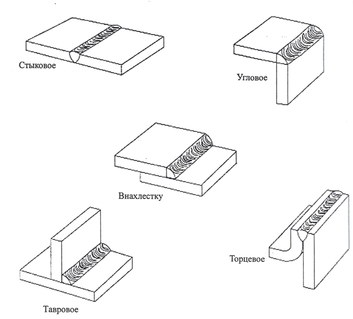 Добрый день уважаемые читатели. Существует пять основных видов соединений: стыковое, внахлестку, тавровое, угловое и торцевое.