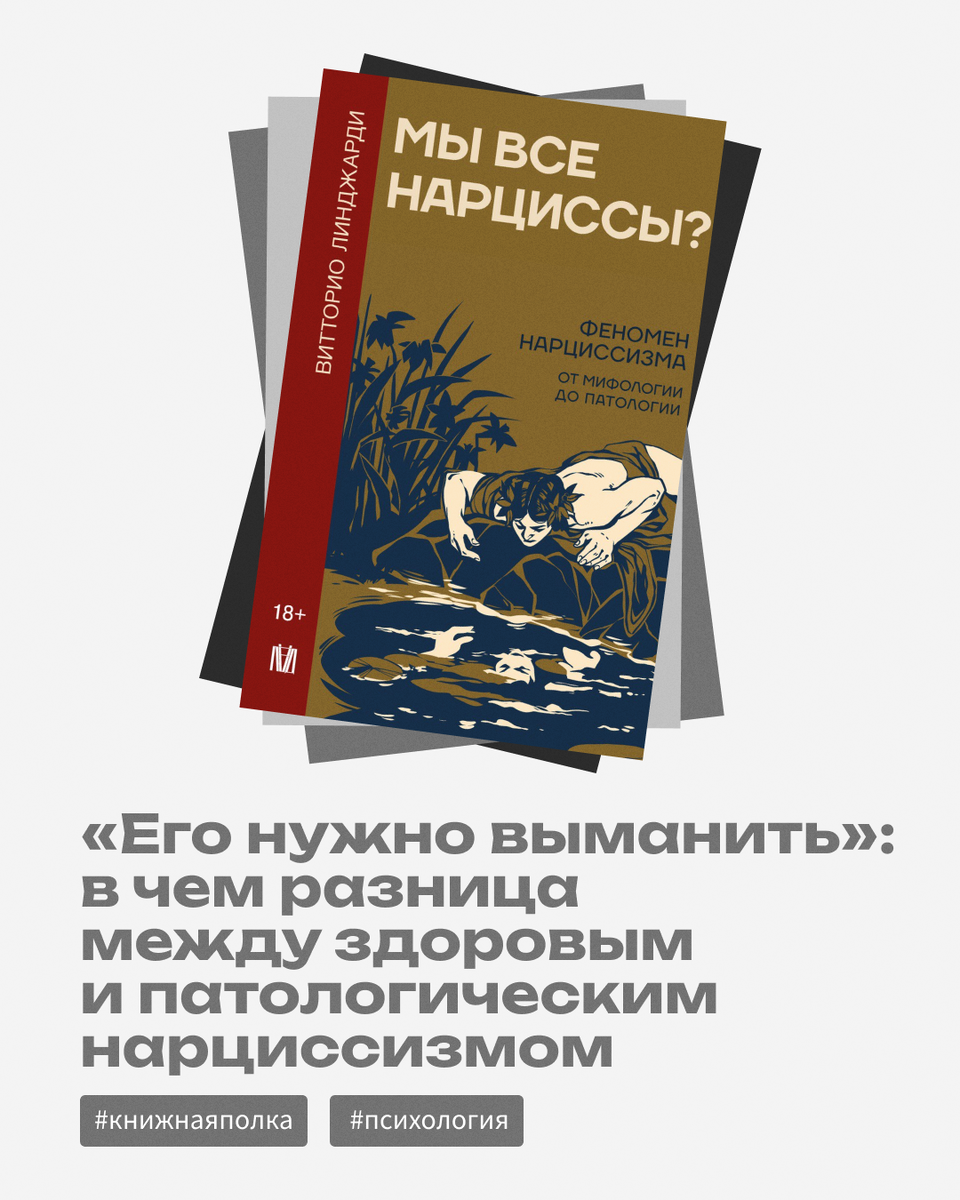 «Мы все нарциссы, но не в равной степени», пишет итальянский психиатр и психоаналитик Витторио Линджарди в своей книге «Мы все нарциссы? Феномен нарциссизма от мифологии до патологии», которая вышла в издательском проекте «Лед». Одной из задач, которую Линджарди поставил себе при написании этой книги, было исследовать пограничную зону между характером с выраженными в большей или меньшей степени нарциссическими чертами и нарциссическим расстройством. «Это важная территория, именно на ней состояние, при котором человеку просто нравится нравиться, превращается в мучение — очень часто для самого человека, почти всегда для окружающих», — разъясняет психоаналитик. «Жизни не так-то просто заставить нас преодолеть порог, отделяющий обычный нарциссизм повседневной жизни от злокачественного нарциссизма, который отравляет рабочую среду, личные отношения, политическую жизнь», — подчеркивает Линджарди. Отрывок из книги «Мы все нарциссы? Феномен нарциссизма от мифологии до патологии» о том, что