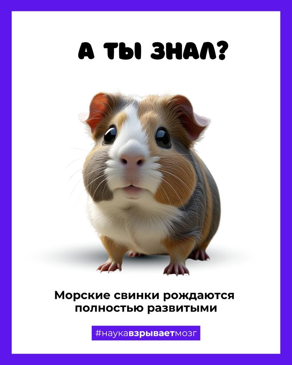 Морские свинки рождаются полностью развитыми — с шерстью, открытыми глазами и могут бегать уже через несколько часов после рождения! 🐹