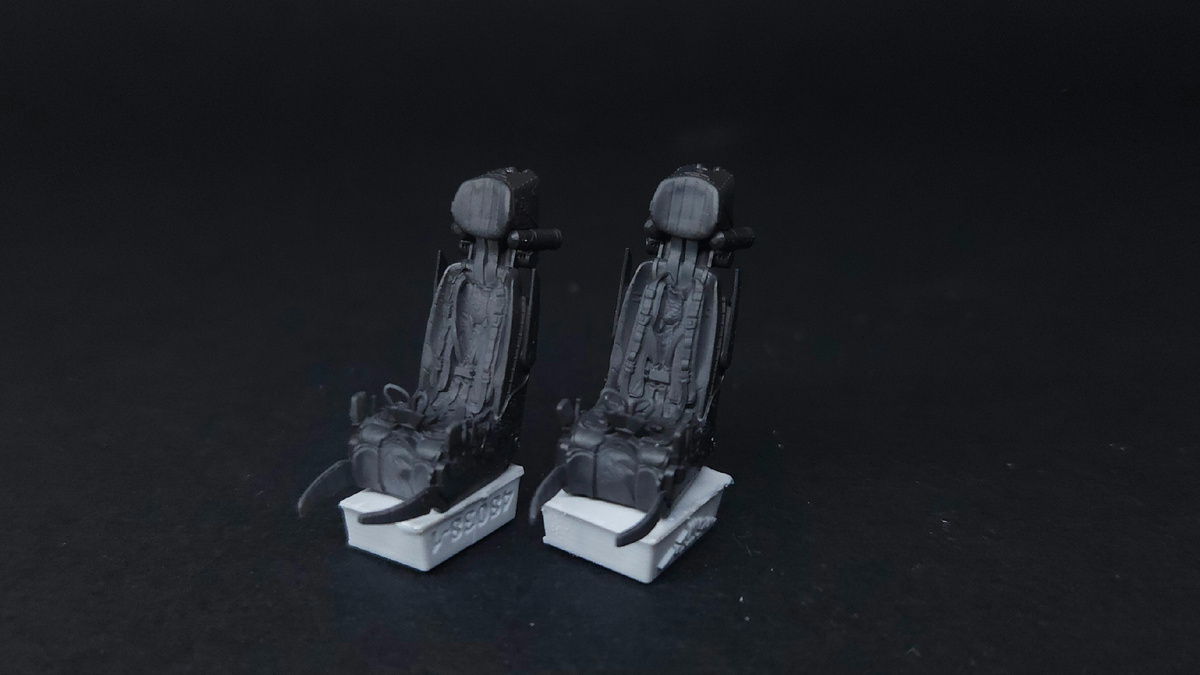 https://t.me/modelizmihobby Обзор и сборку самой кабины можно посмотреть на канале в предыдущих частях. Итак кресла отделены от основания, зачищены и наклеены на каплю суперклея на них же. Это сделано для удобства дальнейшей покраски. Загрунтовал кресла чёрным грунтом от Mr.Hobby, тканевые элементы и подвесную систему загрунтовал белым грун
