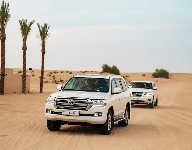 - Трансфер: Экскурсия начинается с трансфера из отеля в Дубае на 4х4 внедорожнике, наш профессиональный гид водитель заедет за вами в отель и Вы направитесь в пустыню. Обычно это занимает около часа, во время которого вы можете остановиться в магазине, чтобы приобрести защитные платки от песка.
