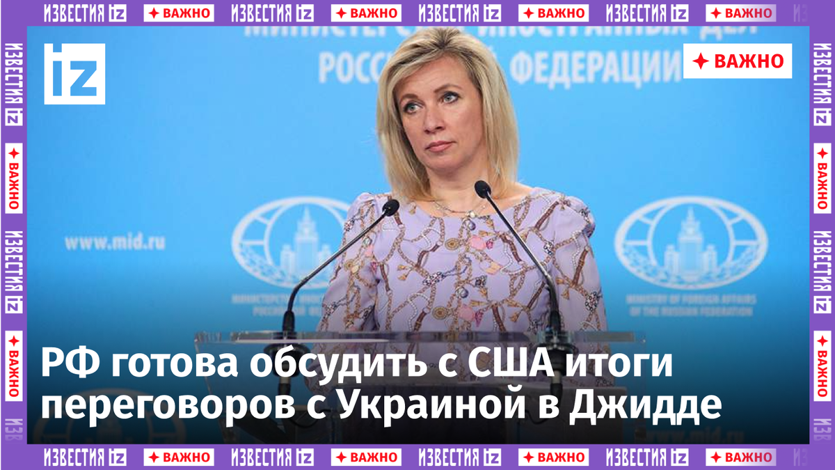 Россия готова обсудить результаты переговоров между США и Украиной, прошедших в Джидде Саудовской Аравии. Об этом заявила официальный представитель МИД РФ Мария Захарова. По ее словам, Россия внимательно следила за встречей, которая состоялась 11 марта между представителями Украины и США. «Мы ознакомились с принятым по ее итогам заявлением, в котором содержатся разные идеи. На данный момент никаких официальных обращений к нам на этот счет не поступало», — сказала дипломт на брифинге. Кроме того, Захарова добавила, что контакты между Россией и США могут состояться уже 13 марта. Переговоры США и Украины состоялись 11 марта. В состав американской делегации вошли государственный секретарь Марко Рубио и советник Белого дома по национальной безопасности Майк Уолтц. Киев представляли глава офиса президента Украины Владимира Зеленского Андрей Ермак, министр обороны Рустем Умеров и министр иностранных дел Андрей Сибига. В этот же день официальный представитель Белого дома Каролин Левитт заявил,