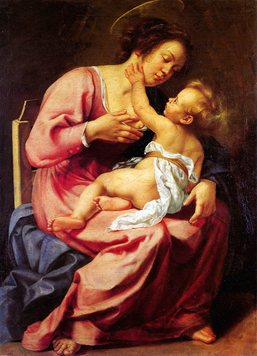 Это потрясающее изображение Девы Марии, кормящей грудью своего ребенка, можно проследить до её первого владельца Алессандро Биффи. Сегодня картина находится в коллекции Галереи Спада в Риме, куда она попала из-за задолженности владельца. Биффи снимал жилье неподалеку от семьи Вералли. Когда у него возникли проблемы с оплатой аренды, он заключил соглашение с управляющим, Вирджилио Веспиньяни, которое позволяло ему выполнять свои обязательства, передав семье Вералли часть своего имущества. Биффи владел несколькими произведениями искусства, и они были завещаны всем наследникам в соответствии с описью, подписанной Лу Биффи 22 декабря 1637 года. Маркиза Мария Вералли вышла замуж за Орацио Спада в 1636 году, и картина, вероятней всего, попала в коллекцию семью Спада где-то после 1643 года, когда умерла Джулия, единственная незамужняя сестра Марии Вералли. Авторство данной картины стало приписываться итальянской художнице Артемизии Джентилески (1593-1653) только в 1992 году. До этой дат