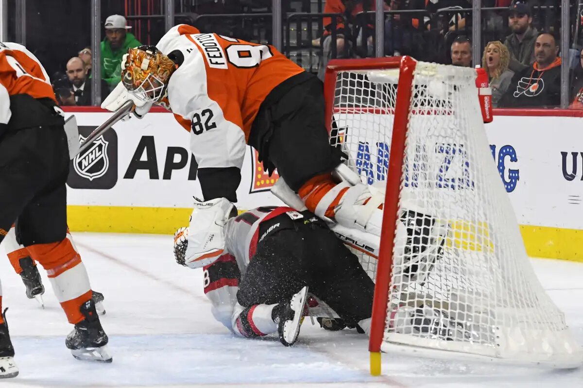 Это был ещё один вечер упущенных возможностей. «Филадельфия» играла лучше, чем можно предположить по счёту, но в очередной раз не смогла реализовать свои шансы. Чёрно-оранжевые отрезками контролировали ход встречи, а Иван Федотов сделал несколько своевременных сейвов. Но этого оказалось недостаточно. Пара глупых пропущенных шайб, продолжающийся спад в игре ключевых исполнителей и отсутствие должной концентрации в решающие моменты привели к тому, что «Сенаторз» одолели филадельфийцев (5:2). Что самое обидное? Дело не в том, что «Флайерз» показывают плохой хоккей. На самом деле, в последних матчах они продемонстрировали весьма слаженную в структурном отношении игру. Но когда одни и те же проблемы – с забитыми голами, провалами в обороне, нестабильной вратарской игрой – продолжают довлеть над командой, это начинает действовать на неё угнетающе. Иван Федотов совершил несколько важных сейвов, но не обошлось и без ошибок Федотов в минувшем поединке сделал ряд важных спасений. В нынешней камп