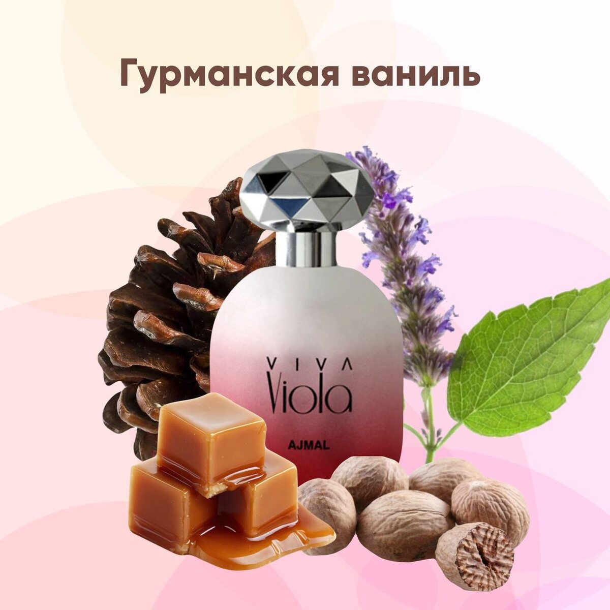 Аромат стручков и цветов ванили знаком практически каждому благодаря кулинарии: лакомый, сливочно-кремовый, добрый, уютный и одновременно чувственный. Также в ней хорошо проявлены пряные и древесные акценты. Ваниль обладает очень разнообразным характером и способна передавать целую палитру настроений, от детского и беспечного до искусительного и загадочного. Научные исследования показывают, что запах ванили неизменно входит в число наиболее приятных для людей вне зависимости от пола и возраста. Именно поэтому ноту ванили обожают применять как в пище, так и в парфюмерии. Ванильная нота способна менять оттенки в зависимости от того, с какими другими нотами и аккордами она взаимодействует. Она может смягчать и приглушать резкие акценты цветов или кожи, или наоборот, подчёркивать и придавать объём (особенно, для пряностей). Ваниль идеально сочетается с гурманскими нотами, особенно с шоколадом и карамелью. Отличный образец такой ванили – Ajmal Viva Viola, в которой тягучие пачули и плавлена