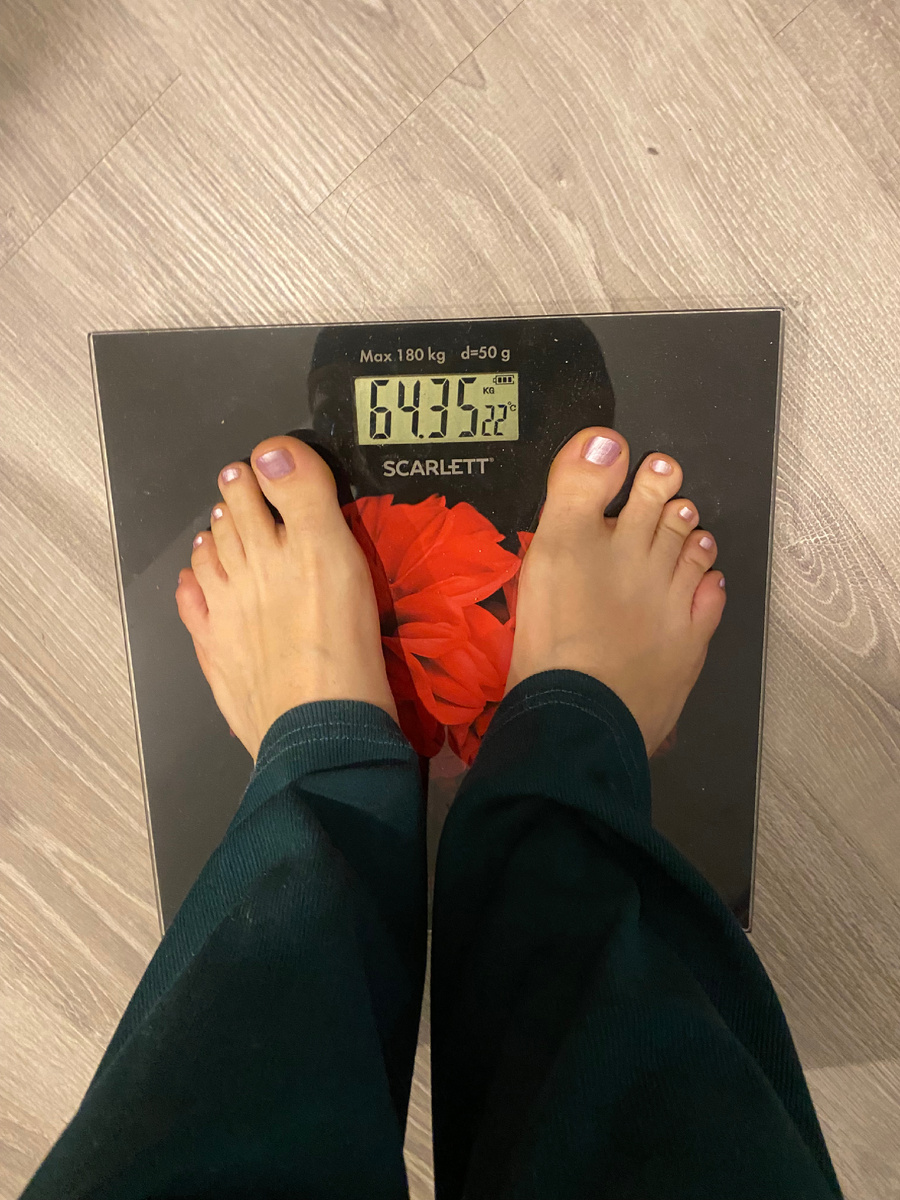 Сама не поняла, как это произошло, но неделя пролетела стремительно. Сегодня пора вставать на весы, а я понимаю, что точно не сбросила ни грамулички. Встаю. Набрала. 350г. Хорошо, что с прошлого раза был «запас хода», так что в плановые 64,4 я тютелька в тютельку втиснулась. На этой неделе единственная, кто попал в план — одна из моих подружек похудела, но недостаточно, вторая набрала и не попала в желаемую цифру. Ну, а про третью я рассказывала — она сбежала: До увеличения подвижности я на этой неделе не дошла. В смысле, она увеличилась, но 10к шагов я пока не нахаживаю, а йогу прогуливаю. Интервальное тоже соблюдала кое-как — забывала отмечать в приложении и вот результат. Следующая неделя тоже будет сумбурной, поэтому есть вариант не вписаться в график. А вот через неделю серьезно нацелена брать себя в руки и худеть.