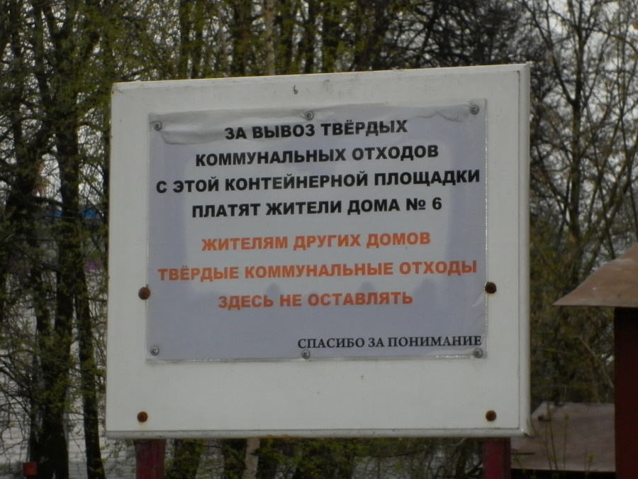 Если жители дома № 6 будут и дальше препятствовать жителям других домов оставлять на помойке твердые коммунальные отходы, то вскоре те начнут оставлять здесь жидкие коммунальные отходы. Нельзя твердые, оставим жидкие…