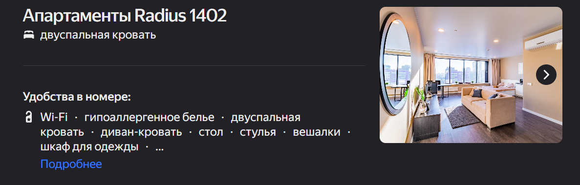 - Возвращаться туда мы не будем, хоть расположение и отличное. Либо приедем уже в сам Радиус, они тоже сдают апарты.
