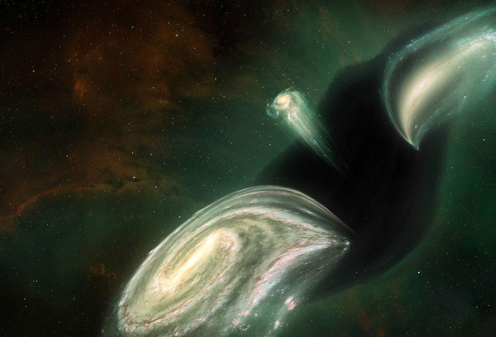 Одна из самых популярных теорий заключается в том, что Великий Аттрактор — это огромное сверхскопление галактик, чья гравитация доминирует в этой области. Сверхскопления — это крупнейшие структуры во Вселенной, состоящие из тысяч галактик, связанных вместе гравитацией. Например, наше местное сверхскопление, называемое Сверхскоплением Девы, также движется в сторону Великого Аттрактора. - Тёмная материя