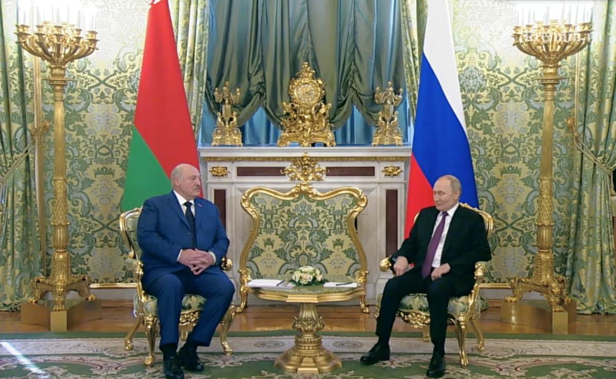 Переговоры Владимира Путина и Александра Лукашенко начались в Кремле. Что уже сказали лидеры: Путин: — Отношения РФ с Белоруссией братские в прямом смысле слова, они могли бы быть примером для других стран. — Лукашенко завтра выступит в Совете Федерации. — В сфере экономики у России и Белоруссии всё развивается наилучшим образом, несмотря на все сложности. — Путин ждёт президента Белоруссии 9 мая в России. Лукашенко: — Отношения Минска и Москвы "вышли на очень высокий уровень". — У США нет плана по конфликту на Украине, Вашингтон зондирует почву. — На Россию "не нажать" по вопросу урегулирования на Украине, США нажали на Киев. — Россия обладает "большими козырями" в ситуации на Украине, поэтому договориться об урегулировании удастся, когда Москва "их достанет". — Курская область будет окончательно освобождена в течение буквально нескольких дней.
