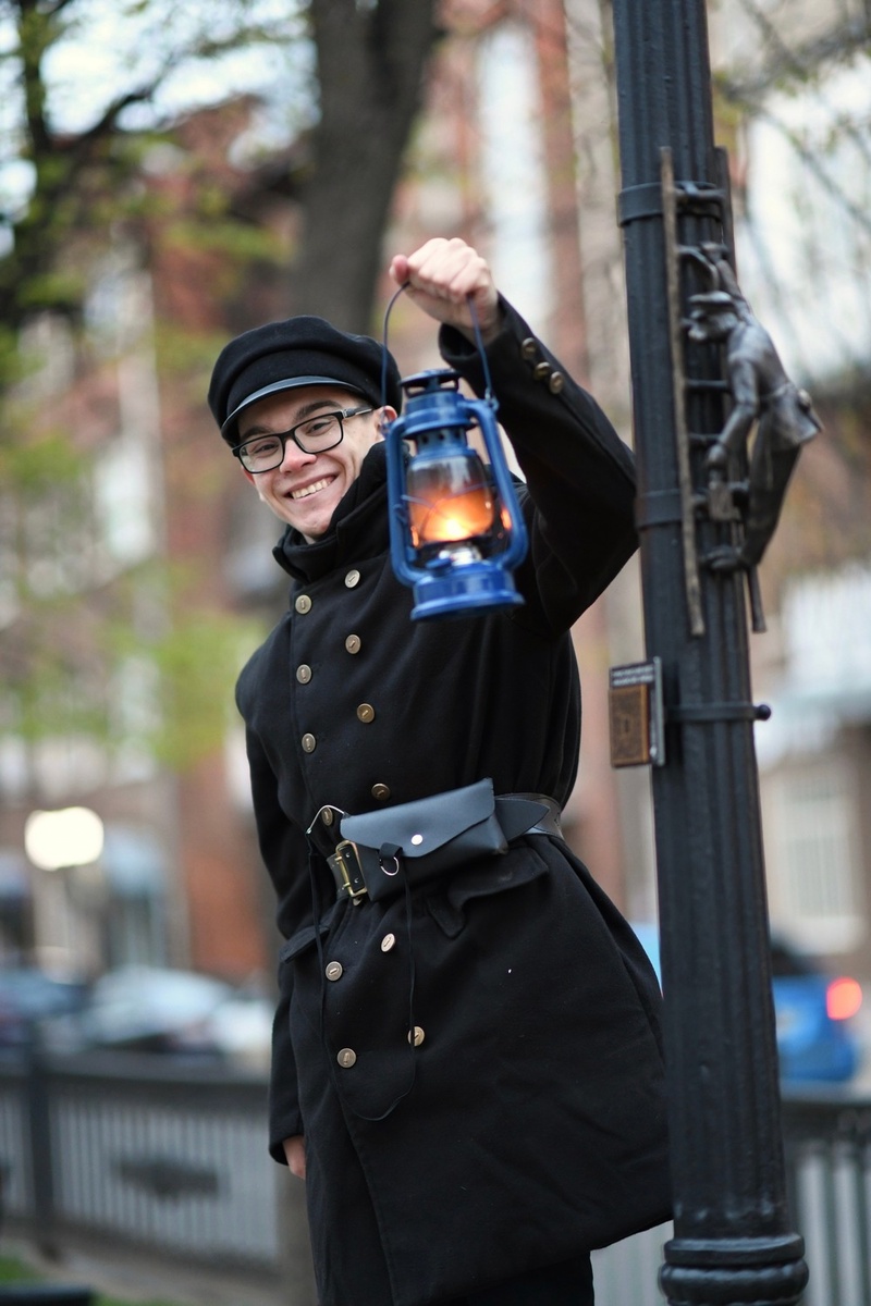 «Идем мы с туристами, на улице — небольшой дождь. Все в плащах, никто не мокнет, всем хорошо. И вдруг навстречу нам – батюшка в рясе. «А что это вы тут делаете?» — с явной тревогой спрашивает он. Мы объясняем: «Это экскурсия, туры с фонарщиком, возьмите, пожалуйста, визитки, приходите, присоединяйтесь в удобное для Вас время». Наш собеседник сразу в лице переменился: выдохнул с облегчением, кивнул и даже, как нам показалось, обрадовался: «Экскурсии? Ну ладно, это хорошо, спасибо», — и взял визитку. А туристы смеются: «Кажется, батюшка нас испугался! Видимо, подумал, что раз мы с фонарями идем и все в плащах, то, наверное, это какие-то сектанты. А как узнал, в чем дело – сразу успокоился человек». Мы до сих пор вспоминаем этот эпизод с улыбкой».