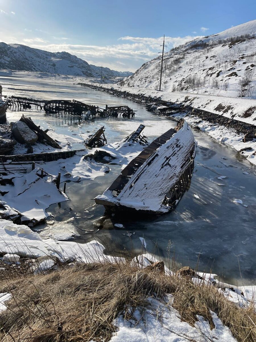 Поселок Териберка имеет интересную историю. Выход в Северный Ледовитый океан через Баренцево море делает во все века его привлекательным для рыболовных судов. Точных данных об основании поселка нет, известно лишь то, что населяли это место поморы. Расцвет поселка пришелся на 30-50е годы прошлого века. Тогда здесь были построены судоремонтные мастерские, образован колхоз. Поселок относился к закрытому типу населенных пунктов. С 70-х начался закат. С 5 тыс человек (в 30-х годах) население уменьшилось в 5 раз (сейчас около 1 тыс жителей). Рыбокомбинат оказался невостребованным, рыболовецкие суда стали не нужны. Так постепенно образовалось кладбище кораблей.