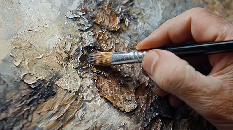 Технику сухой кисти использовали китайские художники при написании пейзажей с кистями разного размера, чтобы добиться атмосферных мягких и размытых эффектов. В дальнейшем художники середины прошлого века начали пробовать сухую кисть и в акриловых, и в масляных картинах, в основном рисуя портреты на заказ. Метод подразумевает вместо масла или воды (в зависимости от типа краски) использование сухой кисти и меньшего количества краски. Таким образом, когда мазок сделан, он имеет более царапающий, текстурированный и тонкий вид. Эта техника удобна в живописи как на водной (акварель, акрил), так и на масляной основах и отлично подходит для исправления ошибок или недостатков в вашей работе без риска полностью переработать картину. Картины, созданные с помощью сухой кисти, покрываются лаком, чтобы краска не портилась и не трескалась. В основном техника встречается в монохромным работах, написанных черными и белыми красками, во избежание мутного фона, который может проявиться при использовании н
