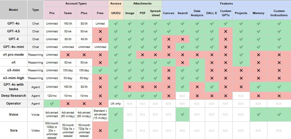 Сравнение ключевых особенностей разных языковых моделей компании OpenAI 📈