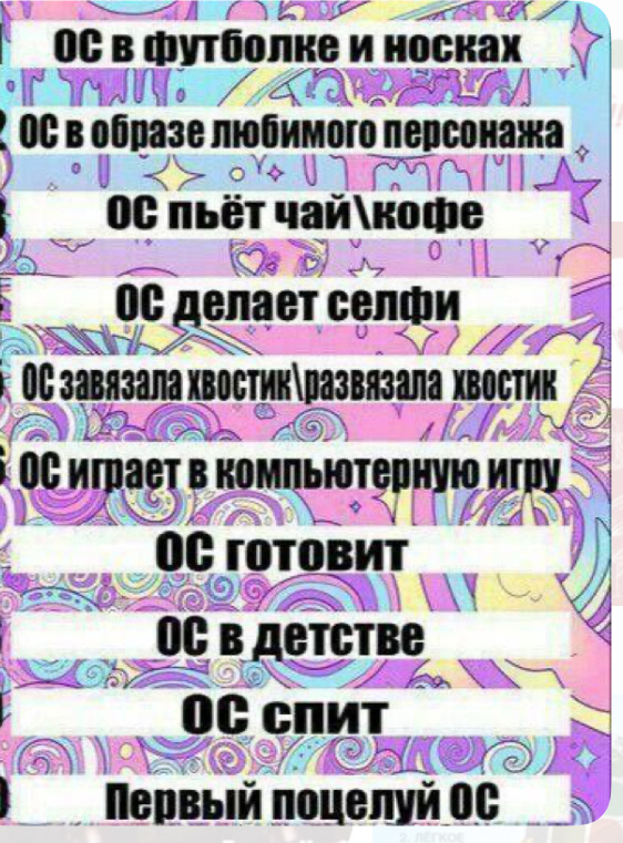 Итак, вот сам челлендж, кому нужно, берите) Итак, вот моя ос: ос в футболке и носках: ос в образе любимого персонажа : Ос пьёт чай ☕️ Ос делает селфи Ос завязывает хвостик: Ос играет в мобильную игру Ос готовит я, как и моя ос, готовлю так, что дай бог кухня не загорится ( Ос спит Ос в детстве И, самое сладкое: первый поцелуй ос🩷🩷🩷 А на этом всё, пока-пока!✌️