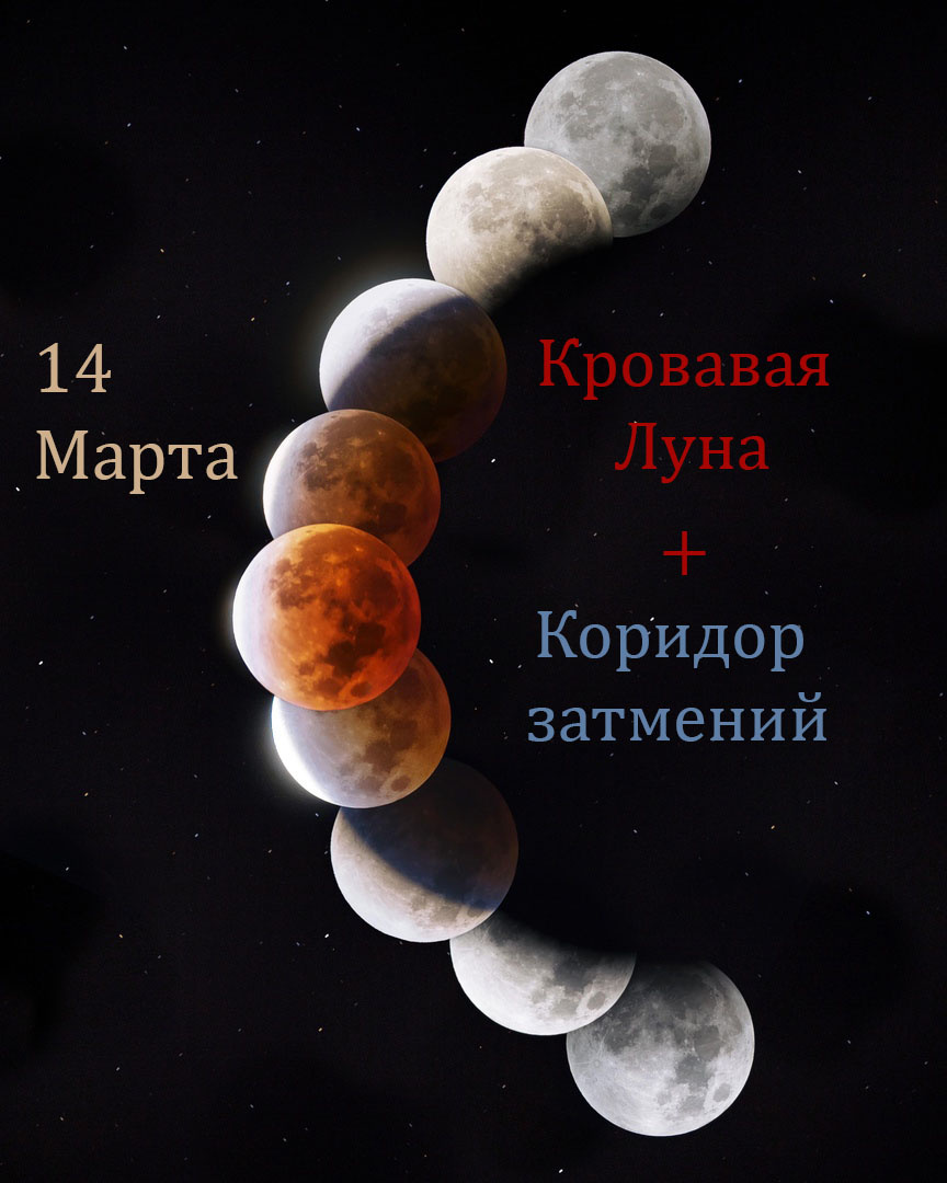 В 2025 году произойдут два солнечных и два лунных затмения. 14 марта 2025 года случится первое из них — полное лунное затмение. Лунное затмение — это астрономическое явление, в процессе которого Земля проходит между Луной и Солнцем и отбрасывает тень на поверхность спутника (Луны). Кровавая, или красная, Луна — это явление, которое возникает во время полного лунного затмения. В этот момент Луна проходит через тень Земли и постепенно утрачивает яркость, а ее поверхность приобретает красноватые оттенки. Феномен называют «кровавой Луной» из-за глубокого медно-оранжевого свечения, которое наблюдается при полном затмении. По словам астролога Маргариты Терехиной: - лунное затмение всегда обращает наше внимание на внутренние, психологические процессы, а солнечное — на внешние, социальные. Эксперт Татьяна Ермолина отмечает: - Период будет ставить нас в условия дефицита возможностей, ресурсов и времени, буквально испытывать на прочность. А победителями из него выберутся только самые сильные д