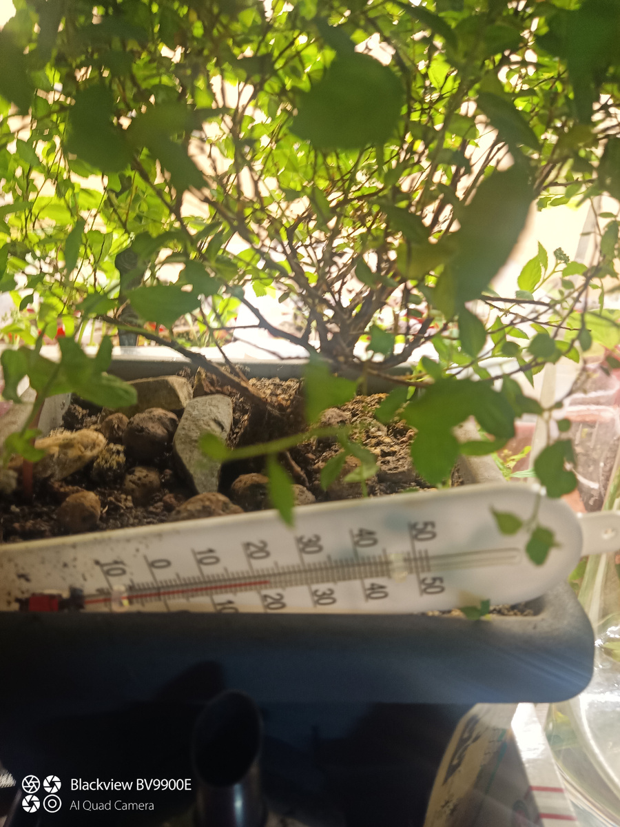 Друзья, вот я вам сейчас покажу про температуру. У меня два места, где растут растения - на окне и на столе. У меня есть два термометра из фикса, просто для общего понимания дела. Один в горшке на столе: Второй на окне, в теплице. Это обычные воздушные термометры. Они показывают температуру воздуха. Почвенный термометр я оставила на даче. Ну вот, дурочка. Но зато у меня есть дистанционный, который очень быстро изменяет температуру поверхности. Выглядит он вот так. Нажимаешь на кнопочку, и а экране видно температуры. Итак, приступим. Температура воздуха и температура поверхностей, которые не подогреваются и не охлаждаются, одинаковые. Так что измеряем просто стену. 24°С. Примерно как и мои спиртовые показывают с учётом погрешности. На окне теплица. Она нужна, напомню, чтобы растения не замёрзли. Потому что я всегда держу приоткрытым окно. И вот что на створке. Минус два! На подоконнике рядом 7°. В садике котика 12,9. На подоконнике рядом почти 14. Тут бы и капусте понравилось. В теп