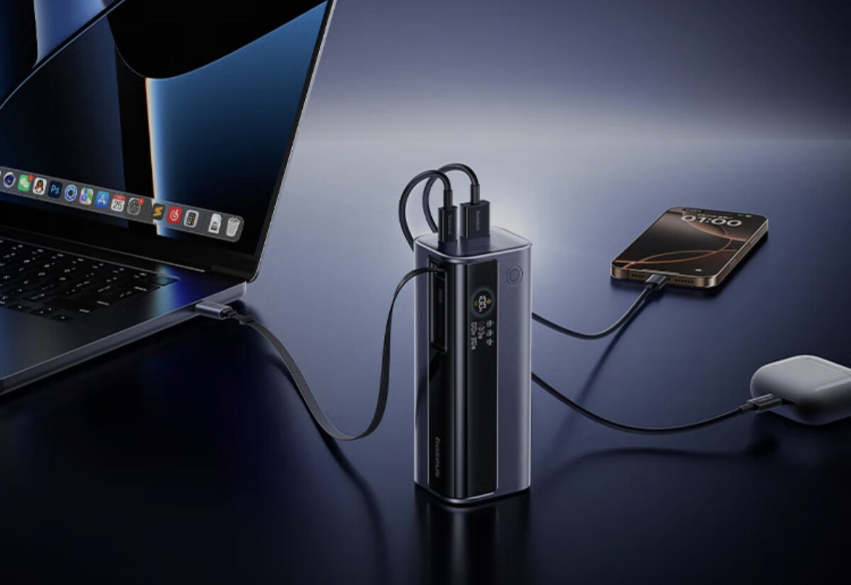 Baseus выпустила портативную зарядку GR11 с 100-ваттной мощностью и втягивающимся кабелем
