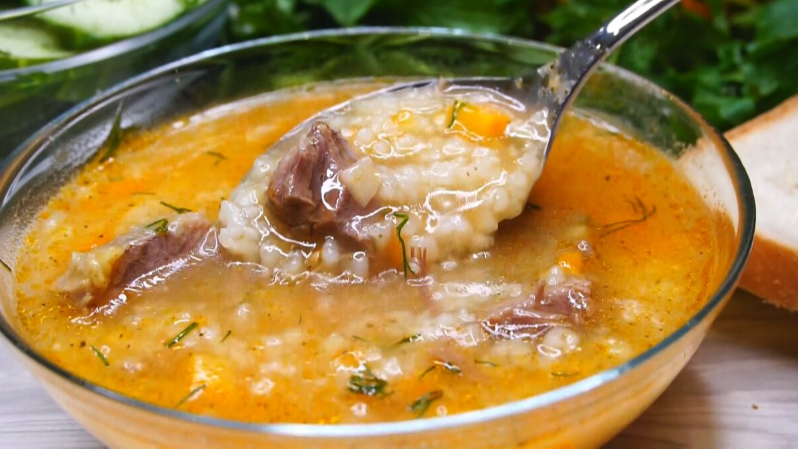 Суп с рисом. (Суп А-ля Харчо). Очень вкусный супчик с мясом и рисом, который я частенько готовлю дома. Суп получается наваристый, ароматный и очень вкусный. Рецепт: Говядина на кости – 500гр. Вода – 2л Рис – 3ст.л. (50р.) Морковь -1шт. Луковица -1шт. Помидор (большой) -1шт (или 3ст.л. томатного соуса) Чеснок – 2зуб. Соль -1/2ч.л. Лавровый лист -2шт. Хмели-сунели – 1/2ч.л. СПОСОБ ПРИГОТОВЛЕНИЯ В кастрюлю кладем говядину на кости. Заливаем водой и ставим на огонь. Снимаем накипь. Варим полтора часа до готовности мяса на среднем огне. Промываем 3 ст.л. риса. И добавляем к готовому мясу и варим 12-15 минут до готовности риса. За это время одну небольшую морковь нарежем кубиком. Луковицу нарежем кубиком. Один большой помидор разрежем на пополам, берем половинку и натрем на крупной терке, шкурку убираем она нам не понадобится.