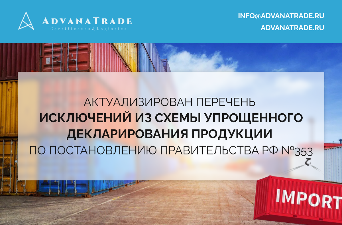 ✅ Актуализирован перечень исключений из схемы упрощенного декларирования продукции по Постановлению правительства РФ №353.