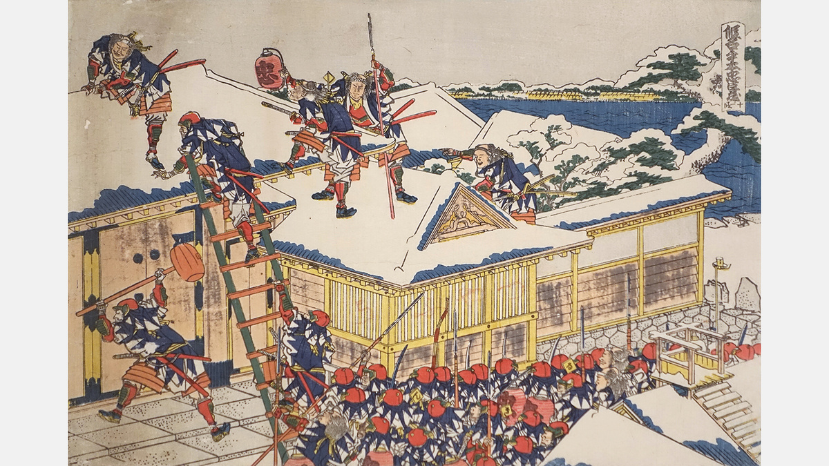 В начале декабря 1702 года оружие, маскировочная одежда и приспособления для штурма были доставлены в Эдо. Было решено, что в ночь штурма в целях конспирации все должны собраться сначала в трех разных местах, а затем сойтись в одном, чтобы оттуда организованно выступить в направлении усадьбы Киры. Намечено было время выступления — в час Тигра, т. е. с трех часов ночи до четырех утра, уточнены опознавательные знаки (белые нарукавные повязки) и пароль («Гора» — отзыв «Река»). Тринадцатого декабря в Эдо было необычайно холодно. Выпал снег, который не таял еще два дня. В ночь на четырнадцатое ронины собрались в условленном месте и начали движение в сторону усадьбы Кира. Для того чтобы их по пути не остановила стража, они повязали на шлемы опознаватель-ные повязки пожарной охраны, что позволило ронинам беспрепятственно добраться до цели.