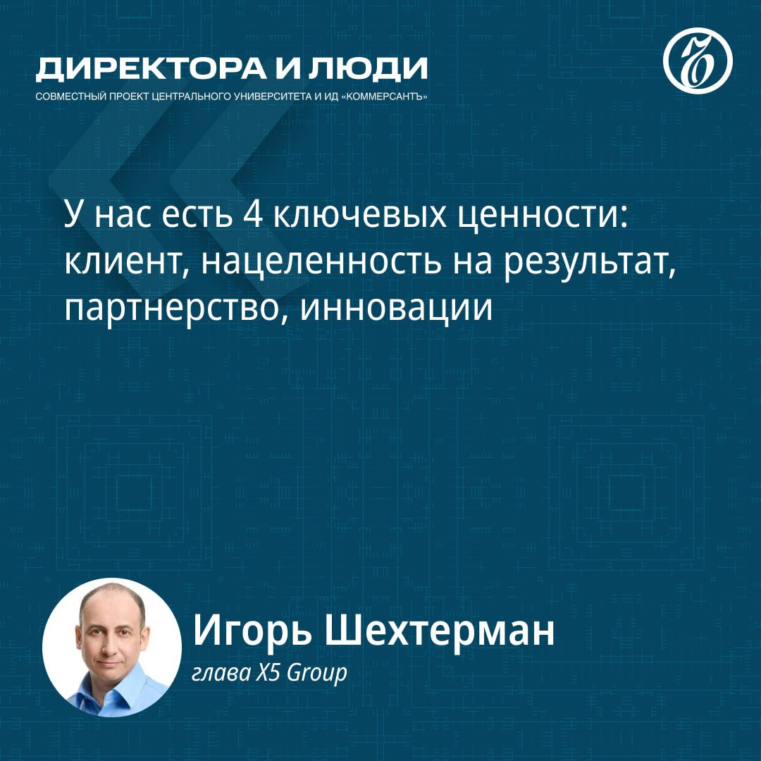 В интервью для второго выпуска совместного проекта «Ъ» и Центрального университета «Директора и люди» Игорь Шехтерман, глава Х5 Group, поделился важными инсайтами о современном ритейле и образовании: Ритейл на сегодняшний день является одной из самых технологичных отраслей. Применение новых технологий помогает компании улучшать сервис и оптимизировать процессы. Одна из главных проблем — нехватка персонала на всех уровнях. Игорь отмечает, что это серьёзный вызов на ближайшие пять-десять лет. Шехтерман рад, что появляется всё больше университетов, которые активно взаимодействуют с бизнесом. Важнейшим аспектом для вузов является понимание потребностей рынка, чтобы готовить востребованных специалистов. Х5 Group активно сотрудничает с Центральным университетом, предоставляя студентам возможности для стажировок и трудоустройства. В настоящее время разрабатывается совместная образовательная программа, которая направлена на подготовку специалистов, соответствующих требованиям рынка розничной т