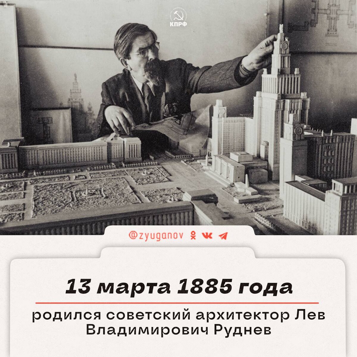 13 марта 1885 г. в Новгороде, в семье учителя родился Лев Владимирович Руднев - выдающийся советский архитектор, чьё имя навсегда вписано в золотую летопись советского зодчества.