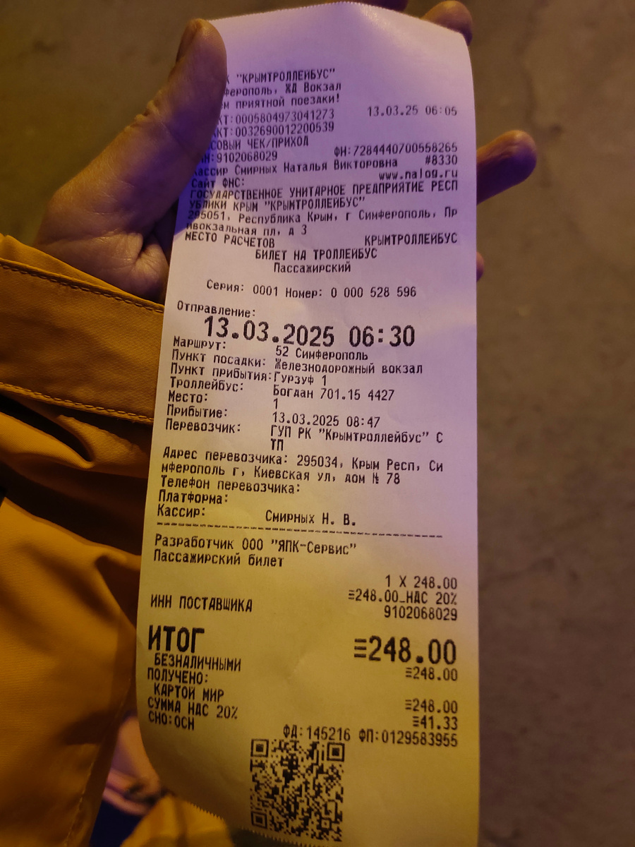 Хотелось бы сказать, что сюрприз был приятным, но нет, такому никто не обрадуется. Впрочем, кончилось все хорошо. Приехала я в Симферополь в 6 утра. В Гурзуф поехала проверенным способом - на троллейбусе. Дёшево и живописно - в окна можно любоваться красивыми видами. Стоимость проезда от Симферополя до Гурзуфа на троллейбусе: До Гурзуфа троллейбус едет примерно 2 часа 15 минут. Около часа я досыпала, а потом смотрела в окно. Любовалась и старалась не пропустить остановку, их сегодня не объявляли. На удивление узнавала остановки и пейзажи, хотя на моей остановке выстроили какой-то павильон. Остановка называется "Гурзуф-тропка" (Гурзуф-1). И тропка там действительно есть, причем непростая. Это длинная, но не крутая лестница. В прошлом году я по этой "тропке" шла с чемоданом 🙈😅 В этом у меня рюкзак и почти пуста сумка через плечо (в ней была еда в поезд). Так что идти было вполне комфортно. Есть лавочки. С правой стороны виноградники. И горы. По дороге зашла в магазин. В прошлом по