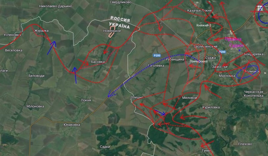 Вечером 13 марта известный военблогер Юрий Подоляка, который внимательно следит за ситуацией в приграничье нашего региона, сообщил, что сегодня не успевает за новостями с линии фронта в Курской и Сумской областях. С утра российская армия продолжала наступление западнее Суджи. Как уже сообщила группировка «Север» ВС РФ, были полностью освобождены от ВСУ пригороды райцентра — села Гончаровка и Заолешенка. Локальные очаги не в счет, отметил эксперт, шла зачистка населенных пунктов. По сведениям Подоляки, к вечеру наши части заняли деревню Рубанщину Заолешенского сельсовета. Со стороны холмов и ранее освобожденного поселка Мелового подразделения ВС РФ пошли на приграничный хутор Олешня, перерезав дорогу. Продвижение составило до 2 километров. Навстречу им с запада шел штурм села Басовка Сумской области. Здесь тоже продвижение. «На Курщине осталось освободить всего четыре села, — заявил Юрий Подоляка. — Таким образом зачистка Курской области подходит к концу — впереди Сумщина...» Вскоре пос