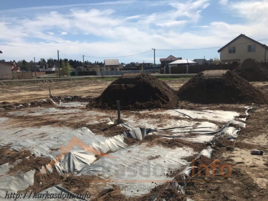 Фундамент лента и плита (более подробно об этой технологии и о том, как собирать и заливать такой фундамент, можно посмотреть в разделе Видео: строительство фундаментов). В первый день был засыпан на геотекстиль и утрамбован в горизонт песок с трамбовкой, коммуникации, далее геомембрана ПВД (LDPE), арматура рабочая А500С д12мм и конструкционная д10мм, опалубка, лягушки готовые комплект д10мм, для ленты арматура д12мм, в 3 стержня верх/низ, и спустя 5 дней заливка бетона Б25 М350 с вибрацией.
