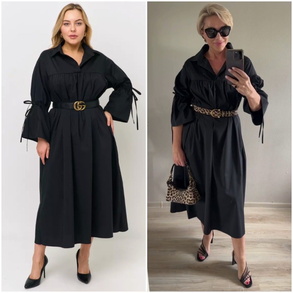 Здравствуйте, дорогие читатели! Меня зовут Ирина, я - стилист, и на этом канале показываю одежду и аксессуары с Wildberries такими, как они есть, то есть, из серии "ожидание/реальность". Мои параметры: рост 169 см, вес 67 кг, 94-74-100 ✅Основной канал: Стильно - не значит дорого! Ставьте лайк в поддержку канала, и давайте смотреть на мою сегодняшнюю покупку. Данное платье - настоящая находка, не только из-за отличного качества по доступной цене, но и из-за своего дизайна: простого и лаконичного, но при этом со своей изюминкой. Платье-трапеция свободного кроя, без пояса (!), поэтому можно носить его в первоначальном виде, а можно - дополняя ремнем. Оба варианта я показала на видео ниже, заодно продемонстрировав, с чем это платье можно сочетать. Выполнено из плотной, дышащей ткани, очень хорошо садится по фигуре. Пышные рукава с кулисками - отличительная особенность модели. Помимо черного цвета, есть так же синий и красный. Размер единый: 46-56. Видео-обзор: Если вам нужен артикул платья