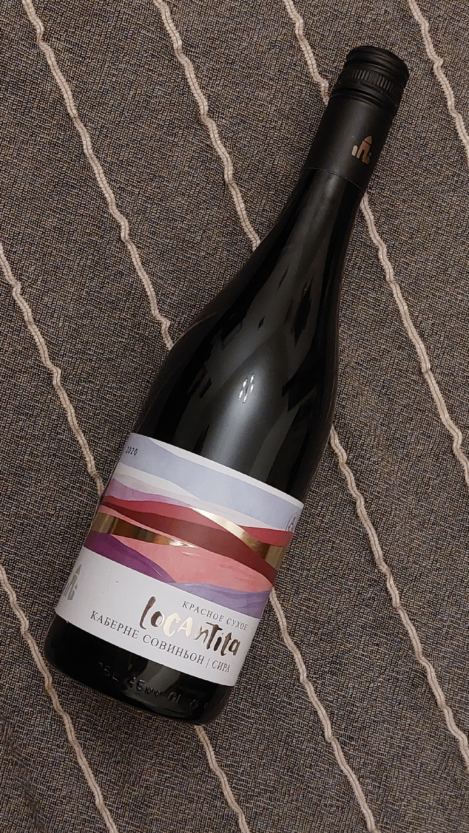 АВ "ЛОКАНТИТА СЕЛЕКТ" Красное сухое (a именно так записано это вино на сайте рейтинга) стало лучшим красным вином по версии Топ100винЛидеры винной полки METRO 2024. Почему вино так называется, если даже на нем написано по-другому, я не знаю. Но попробовать это вино нам ничего не мешает. Красное сухое вино Lacantita Каберне Совиньон - Сира 2020 на сегодняшнем обзоре. Вино розлито в бургундскую бутылку темного стекла с винтом. Пробка на удивление трудно откручивания и трудно завинчивается обратно. С ней явно что-то не так, интересно, проблема в конкретной бутылке или в целом. Это может стать проблемой для качества вина, проверим его при дегустации. Этикетка выполнена в достаточно интересной манере и напоминает пейзажную картину, написанную нарочито крупными мазками. Напоминает этикетку венгра из КиБ. Мне нравится. Контрэтикетка обычная, относительно информативная. Вино розлито в 2022 году, частично выдержано в дубе, алкоголя в нем 14% и делает его в Крыму Альма Велли. Цвет цвет фиолетово