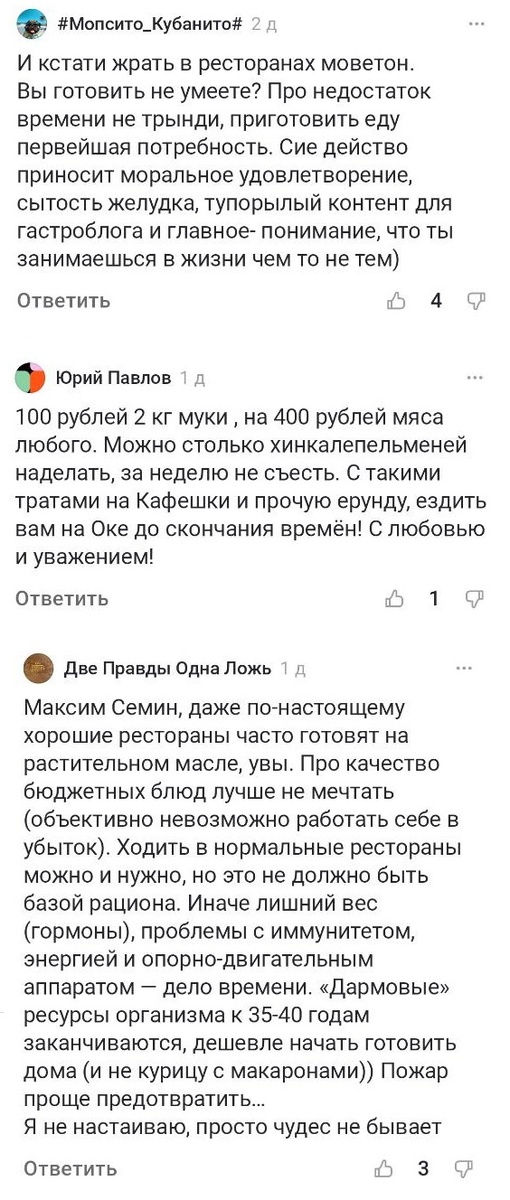 Негатив в комментариях вызывает даже описание простой ситуации, когда вы с друзьями зашли покушать хинкали и отдали по 500 р. на физиономию.