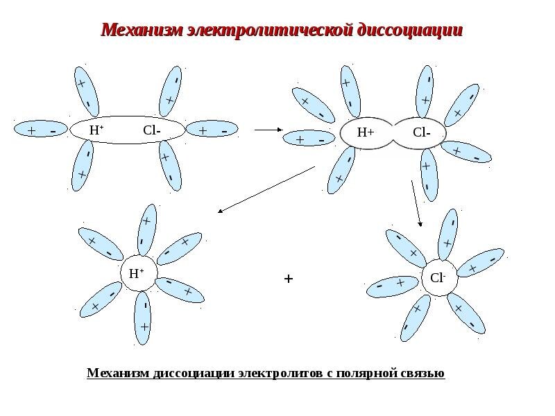 Именно это и делает возможным процессы электролиза, когда одни части растворенного в воде вещества устремляются к положительному, а другие - к отрицательному электроду по правилу притяжения разноименных электрических зарядов. Какое из веществ в итоге восстановится на том или ином электроде - зависит от их свойств и химической активности. Понятно, что при электролизе обычной поваренной соли жутко активный натрий не сможет восстановиться в своем натуральном металлическом виде. Поэтому вместо него на отрицательном электроде выделится газообразный водород. Вообще запомните такое правило: если в водном растворе неких веществ возможно несколько химических реакций, то скорее всего пойдет та, продукт которой выделяется в виде газа или нерастворимого вещества.