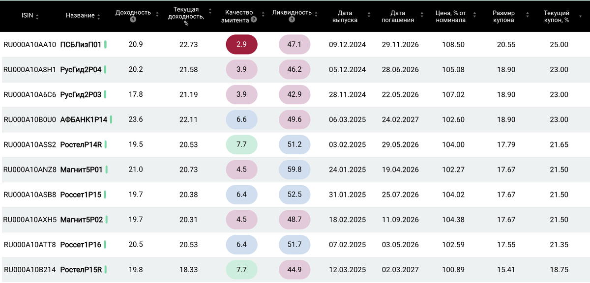 На двух прошлых заседаниях 20 декабря 2024 и 14 февраля 2025 ЦБ хоть и со скрипом, но принял решение сохранить ключевую ставку на уровне 21%. Вкупе с новостями по геополитике это сигнализирует нам о возможном начале тренда к снижению ключевой ставки, в случае отсутствия неожиданных негативных событий. Если ранее, находясь в цикле повышения ставки нам были более интересны вклады, накопительные счета или облигации с плавающим купоном – флоатеры, то сейчас фокус внимания смещается в сторону инструментов с фиксированной доходностью. Стоит понимать, что в случае перелома тренда и начала постепенного или резкого снижения ставки, доходность вкладам и накопительным счетам начнет стремительно падать, а по фиксированным выпускам облигаций начнет ползти вверх из-за повышения интереса инвесторов. Пока на рынке все еще царит некоторая неопределенность, уже сейчас стоит задуматься о покупке облигаций с фиксированным купоном, чтобы вы могли получать высокую доходность при низкой ключевой ставке.