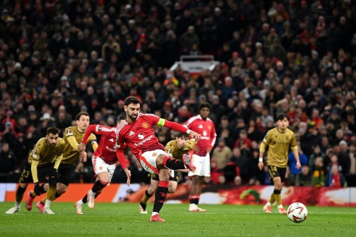 "Манчестер Юнайтед" обыграл "Реал Сосьедад" (4:1, 5:2 по сумме двух встреч) в матче 1/8 финала Лиги Европы. Первый гол в игре на 10-й минуте с пенальти забил полузащитник "Реала Сосьедад" Микель Ойарсабаль. На 16-й минуте Бруну Фернандеш сравнял счёт, реализовав пенальти. На 50-й минуте Фернандеш оформил дубль, снова забив одиннадцатиметровый, чем вывел МЮ вперёд. На 63-й минуте красную карточку получил защитник "Реала Сосьедад" Джон Арамбуру. На 87-й минуте Фернандеш оформил хет-трик, а в дополнительное ко второму тайму время голом отметился Диогу Далот. В 1/4 финала Лиги Европы "Манчестер Юнайтед" сыграет против "Лиона".