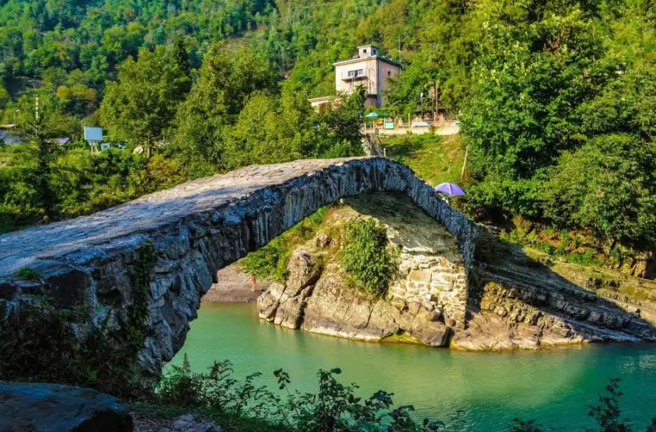 Мост царицы Тамары — уникальное сооружение XII века длиной 29 метров, расположенное на высоте 6 метров без опор и поручней.