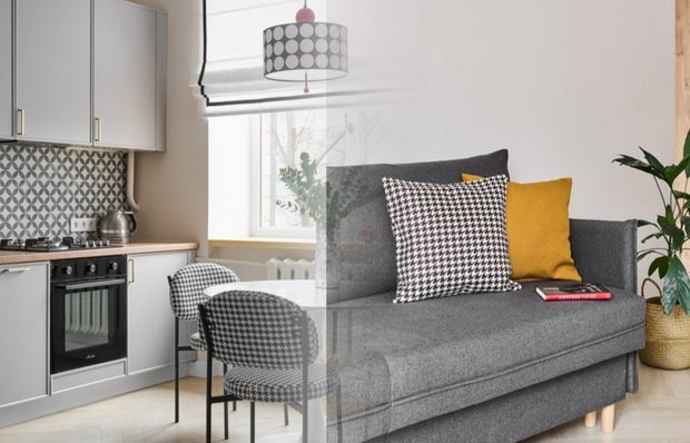 В ходе ремонта решили полностью изменить планировку, объединить санузел, расширить кухню за счет гостиной и сделать ставку на минималистичные решения. Итог — евротрешка с просторной кухней-гостиной, уютной спальней, функциональным кабинетом и вместительной системой хранения. Вдохновляйтесь и берите на заметку классные идеи!
