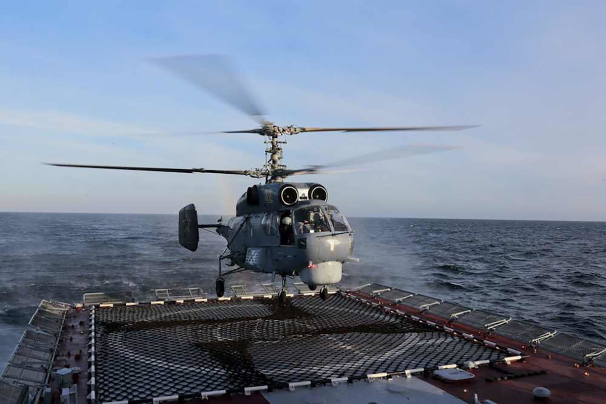 Отряд кораблей Тихоокеанского флота продолжает поход в Азиатско-Тихоокеанском регионе. В его составе корветы «Резкий» и «Герой Российской Федерации Алдар Цыденжапов». Для обеспечения деятельности ОБК на борту корветов находятся вертолёты морской авиации ТОФ, экипажи которых совместно с моряками-тихоокеанцами решают все учебно-боевые задачи. Несмотря на то что надводные корабли с управляемым ракетным оружием обладают мощными системами ПВО, авиация на море продолжает сохранять свою важность как разведывательное и ударное средство. Наличие корабельной авиации в разы увеличивает и дальность обнаружения противника, и поисковые возможности корабля или группы кораблей, и дальность, на которую они могут атаковать обнаруженную цель, и возможности по противолодочной борьбе. Из кабины вертолёта с высоты кажется, что корабль находится в каком-то космическом пространстве, без всякой привязки к поверхности моря, к линии естественного горизонта. Ночью складывается такое ощущение, что просто