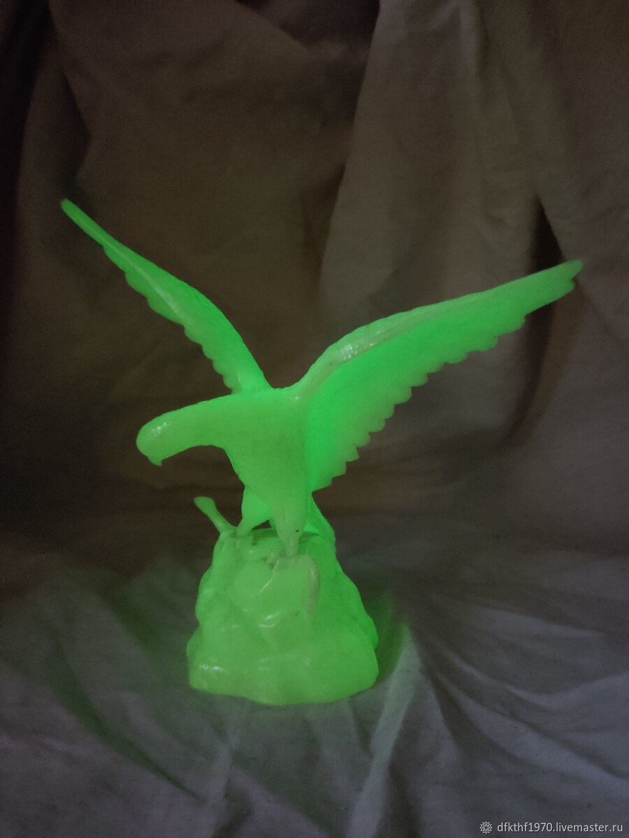 Сначала бабушка Рая жила в Саранске. Мы ездили к ней и для меня городской пятилетней девочки все было в новинку и очень интересно. Домик засыпушка, печка, часы ходики, сейчас уже не помню, что там было кукушка по моему, гирьки, цепочки. Сколько ее помню, всегда спокойная, медлительная, очень тщательно все делала. Рукодельница - умела все - шить, вязать, вышивать. Любой лоскуток шел в дело. Был у бабушки предмет моих вожделений - каменный орел, статуэтка покрытая светящейся в темноте краской. Светился в темноте, цвет у бабушкиного был более холодный, и слабый, такое размытое таинственное пятно. Восхищало то как была сделана фигурка, тщательно вырезанные перышки, сама поза птицы, орел был реалистичный и неимоверно притягательный. Мне естественно не разрешали его трогать, только из бабушкиных рук. Холод и гладкость камня, тяжесть камня. Я была просто очарована. И все высматривала в сувенирных магазинах такого орла, заранее договорившись с матерью, она мне его купит взамен всех подарков