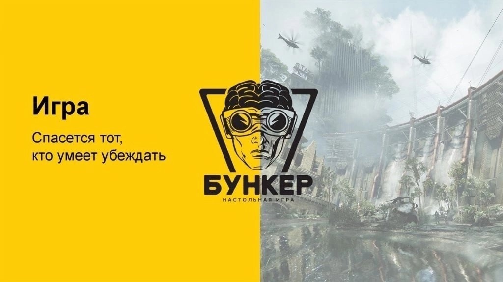 «Бункер» — это дискуссионная настольная игра о выживании после апокалипсиса. Игрокам предстоит решить, кто из них попадёт в бункер и сможет спастись, используя карты профессий, здоровья, хобби, багажа и интересных фактов. В процессе игры открываются карты бункера, влияющие на стратегию выживания. Решение принимается через голосование, а ключевым элементом становится умение аргументировать свою ценность для группы.