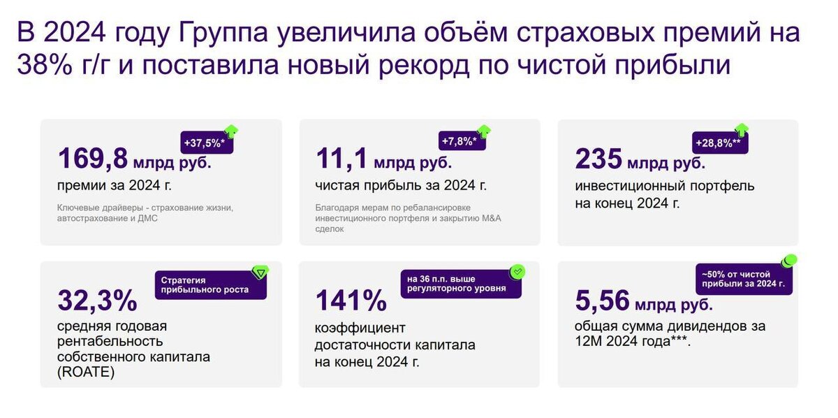 Рост страхового рынка продолжает набирать обороты, и, согласно прогнозам ведущих рейтинговых агентств, эта тенденция сохранится в ближайшие годы. В этой связи будет крайне интересно посмотреть на результаты Ренессанс страхования за 2024 год, как одного из лидеров сектора. Итак, суммарные страховые премии компании выросли за отчетный период на 37,5% до 169,8 млрд рублей. Основным драйвером этого успеха стало направление накопительного страхования жизни (НСЖ), где объем премий увеличился более чем вдвое. Такой результат подчеркивает успешность стратегии компании и высокий спрос на подобные продукты среди клиентов. Полис НСЖ представляет собой своеобразную финансовую "копилку": клиент делает регулярные взносы на протяжении нескольких лет, одновременно получая защиту своей жизни. Для страховых компаний такие полисы становятся долгосрочным источником инвестиций, позволяющим эффективно управлять средствами и получать стабильный доход. Сегмент автострахования остается важным направлением деят